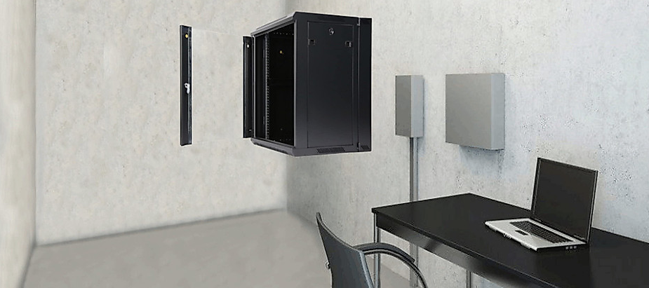 کابینت شبکه دیواری یک کابینت تجهیزات شبکه است که می توان آن را به دیوار ثابت کرد. معمولاً دارای ویژگی های طراحی زیر است: